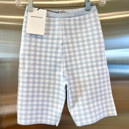 Alexander Wang T Gingham Body-con Bike Shorts Logo Jacquard Woven Blue
