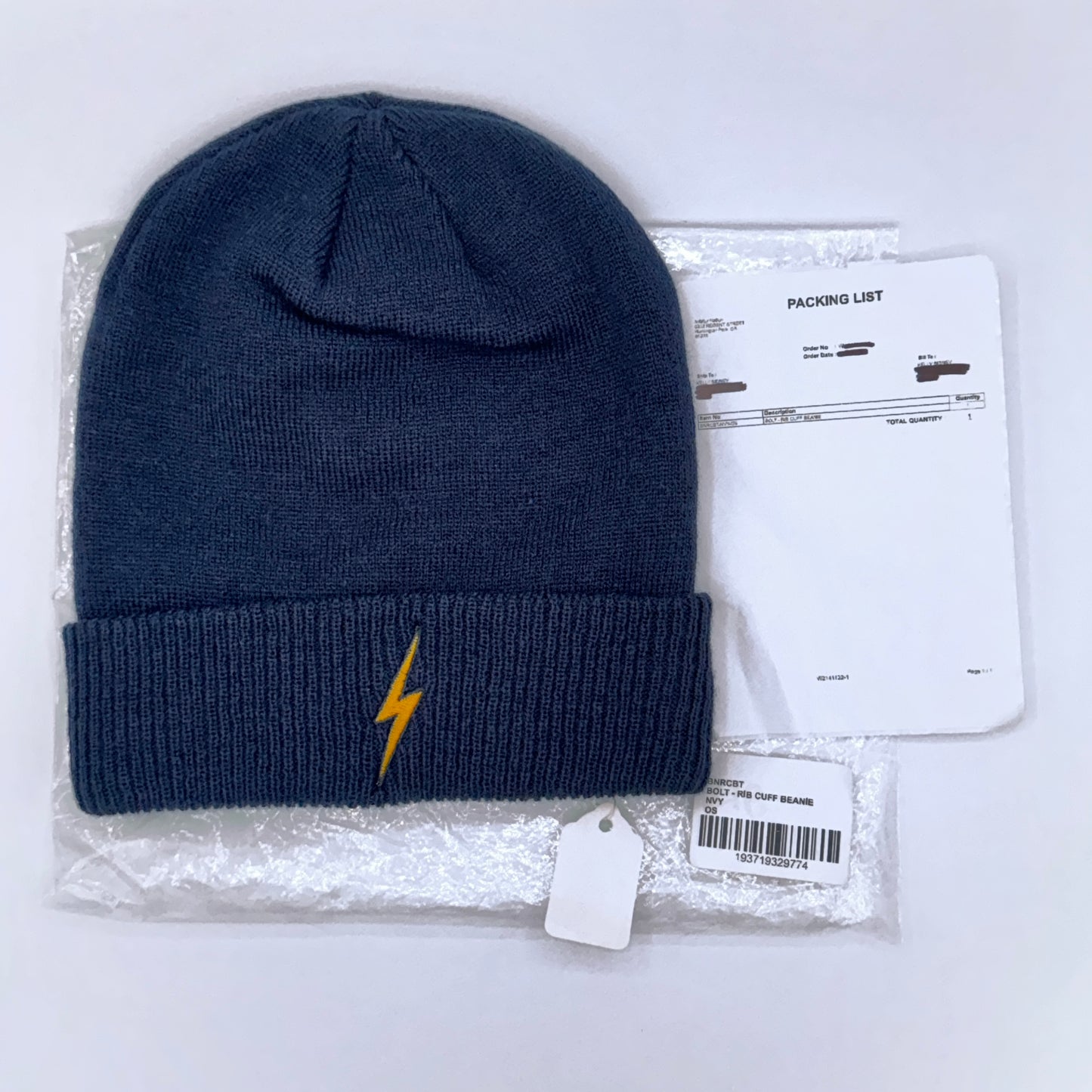 Aviator Nation Navy dark Blue Knit Beanie Hat Bolt Rib Cuff embroidered cap