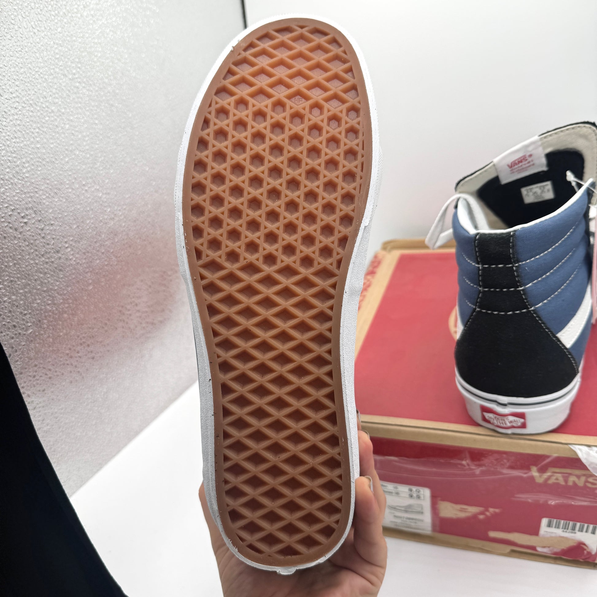 “The Sk8-Hi was a game changer as the first high-top skate shoe to break onto the scene. With a padded collar for ankle support and reinforced toe caps, it remains a style like no other. The Sk8-Hi was our second model to showcase the Vans Sidestripe, and its bold design has remained iconic ever since. The innovation of a high-top skate shoe was, and still is, an emblem of Off The Wall culture. Style VN000D5INVY “.